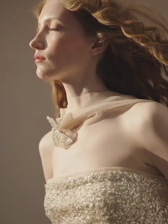 2AM POETRY Shimmering Textured Irregular-Petal Pleated Patchwork Pink-Purple Tulle Dress